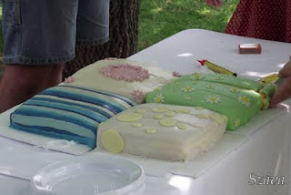 Összességében szebbek is lehettek volna, de kompromisszumokat kellett kötnöm. Ferde volt a sütőforma alja, úgy origamiztam össze a piskótalapokat. A rózsaszín fondant nyújthatatlan lett, nem tudtam vele burkolni, csak díszíteni. 35 fokban készültek, hajnalban 20 kilométert utaztak… Viszont finomak lettek. :)