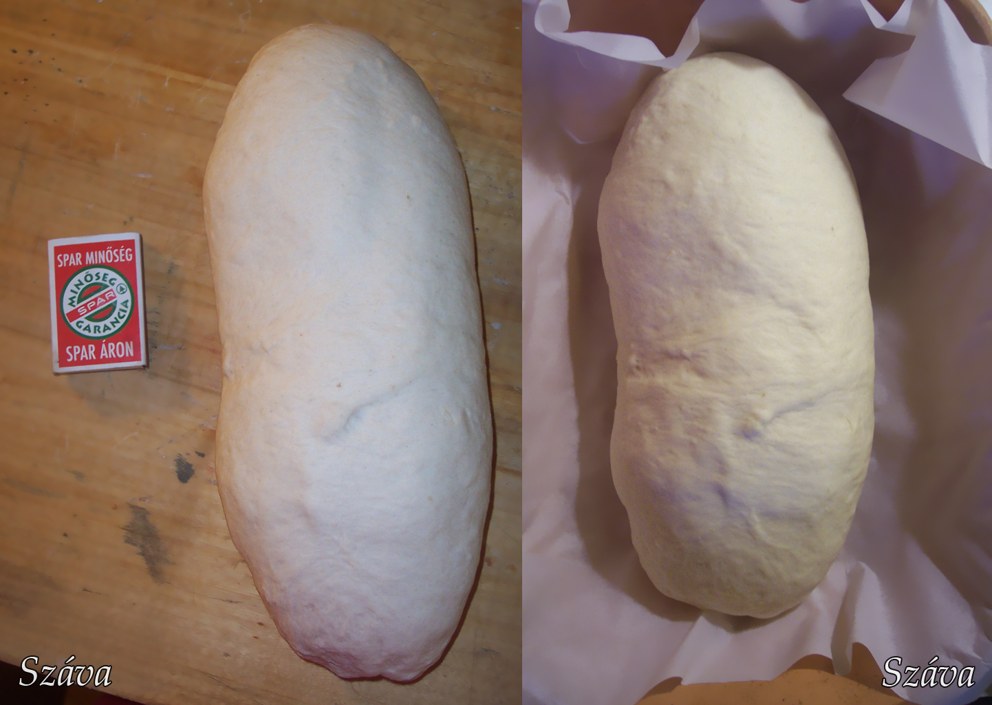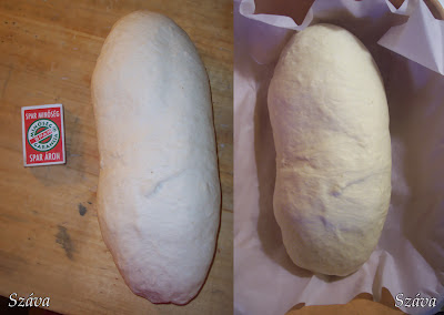 A gép bedagasztotta 15 perc alatt, tálba borítottam, 25 perc alatt a duplájára nőtt. Megformáztam és most jóval nagyobb bátorsággal gömbölyítettem a már feltekert kenyeret, jobban is nézett ki a végén! (videó: Limara egy régebbi kenyérformázása)