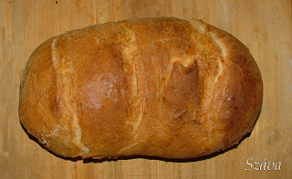 A szilveszteri házibulira saját sütésű vekni formájú kenyeret vittem a lencsefőzelékhez. A héja ugyan lehetett volna kissé cserepesebb és ropogósabb, de finom, vékony maradt így is, annak ellenére, hogy nem zár teljesen jól a karácsonyra kapott cserépedény. Ő lett az első kenyér formájú kenyerem… :)